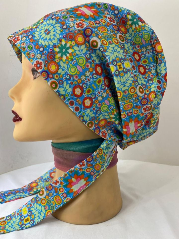 Renkli Çiçekler Desenli Tesettür Bone (Büyük Boy)