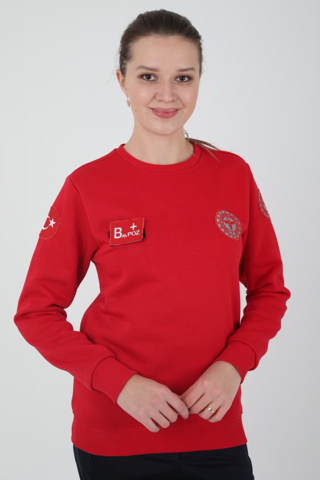 Yeni 112 Acil Sağlık Kırmızı Sıfır Yaka Swit (Unisex- 3 İplik)