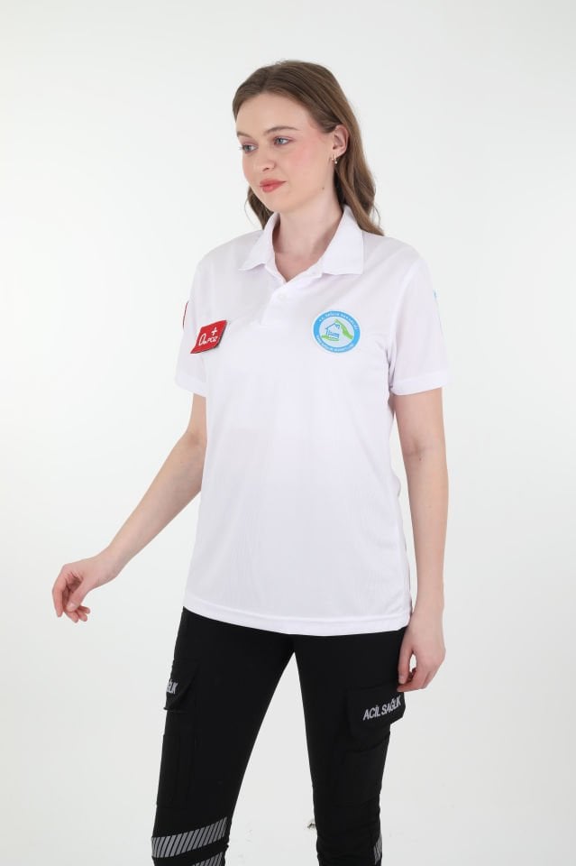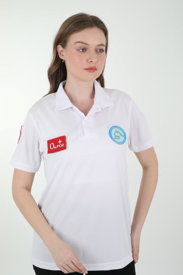 Evde Sağlık Beyaz Polo Yaka Comfort T-shirt (Fileli-Unisex)